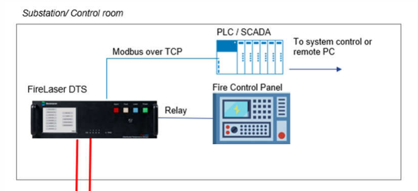 DTS cihazı (FireLaser kontrolör) seçimi, temel olarak toplam korunacak kablo uzunluğuna göre yapılır. Bandweaver dokümanında belirtildiği gibi, her bir FireLaser kontrolörü tek bir fiber optik sensör kablosu üzerinde 10 km’ye kadar ölçüm kapasitesine sahiptir. Bu nedenle, sahanın büyüklüğü ve kablolama topolojisi (düz veya döngü) analiz edilerek kaç adet kontrolör kanalına ihtiyaç duyulduğu belirlenir. Seçimde ayrıca, ortam koşullarına uygun muhafaza sınıfı (IP) ve operatör arayüzü ihtiyacına göre dokunmatik LCD ekran gibi seçenekler dikkate alınır. Entegrasyon, cihazın standart endüstriyel iletişim protokolleri üzerinden mevcut saha otomasyon sistemine bağlanmasıyla gerçekleştirilir. FireLaser kontrolörü, Modbus TCP/IP protokolü ile doğrudan sahanın SCADA sistemine veya PLC’sine bağlanabilir.Bu entegrasyon sayesinde, algılanan sıcaklık verileri, metre hassasiyetindeki alarm lokasyonları ve sistem durum bilgileri merkezi kontrol odasındaki harita arayüzüne aktarılır. Son adım, cihaz çıkışlarının yangın güvenlik sistemi ile ilişkilendirilmesidir. Kontrolörün röle çıkışları, yangın kontrol panelinin giriş modüllerine bağlanarak herhangi bir alarm durumunda sahada sesli/ışıklı ikaz sistemlerini, yangın söndürme sistemini veya itfaiye çağrı sistemini otomatik olarak tetikleyecek şekilde yapılandırılır. Bu sayede DTS sistemi, pasif bir algılama sisteminden aktif bir yangın önleme ve müdahale zincirinin entegre bir bileşenine dönüşür.